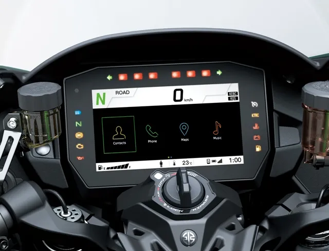 Krajnja integracija najviših standarda tehnologije, performansi i udobnosti vožnje. Nove namenske funkcije kao što je ARAS sistem pružaju prednosti u stvarnom svetu, uključujući prilagodljivi tempomat i detekciju mrtvog ugla. Integrisan u novu TFT instrumentaciju od 6,5” u boji je Kawasakijev SPIN Infotainment sistem. Doživite uzbuđenje jedinstvenog balansiranog motora sa kompresorom i za putovanja na velike udaljenosti i za svakodnevnu vožnju.